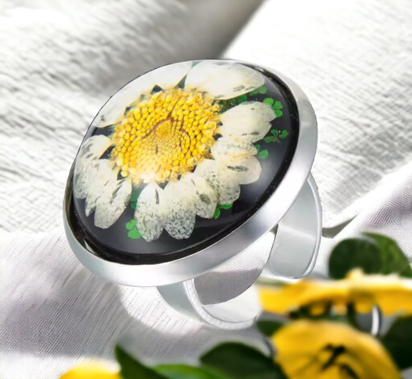 Resin is a somewhat pliable, easily scratchable, and chemically sensitive material compared to metals. To preserve your jewelry, avoid exposing it to water by not wearing it while showering or swimming, and refrain from applying perfume directly onto it.