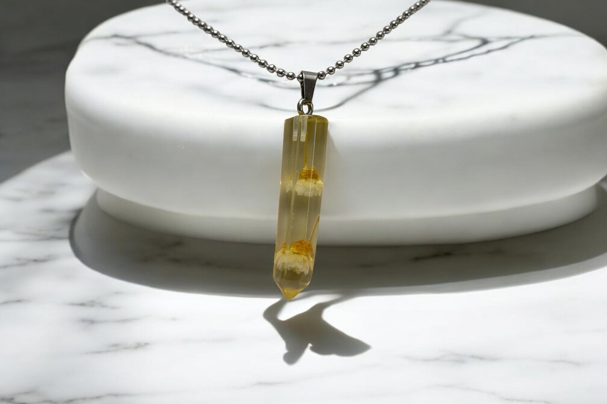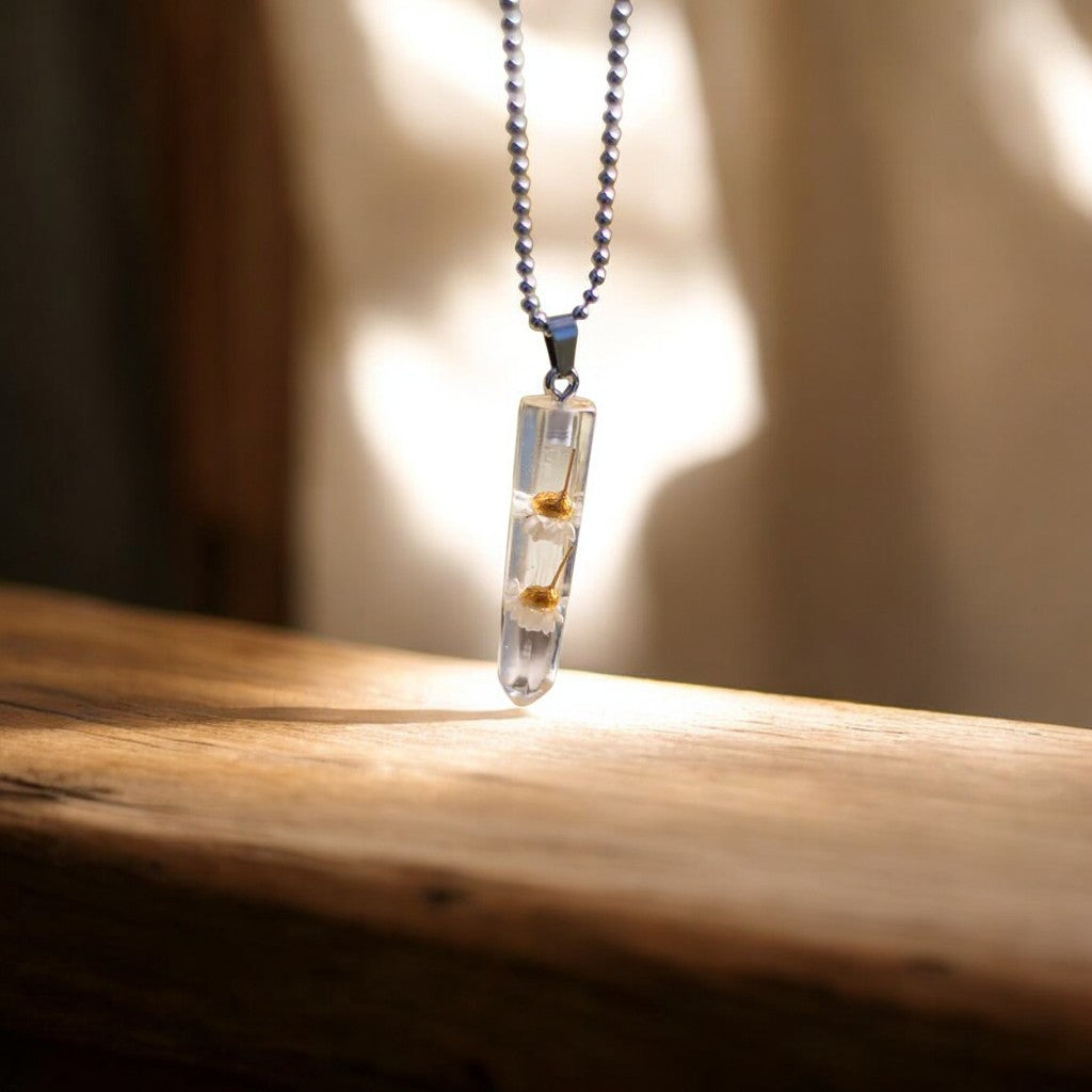 · Materials: Resin, preserved flowers, metal alloy ball chain