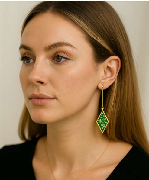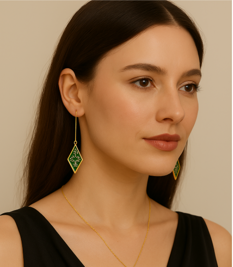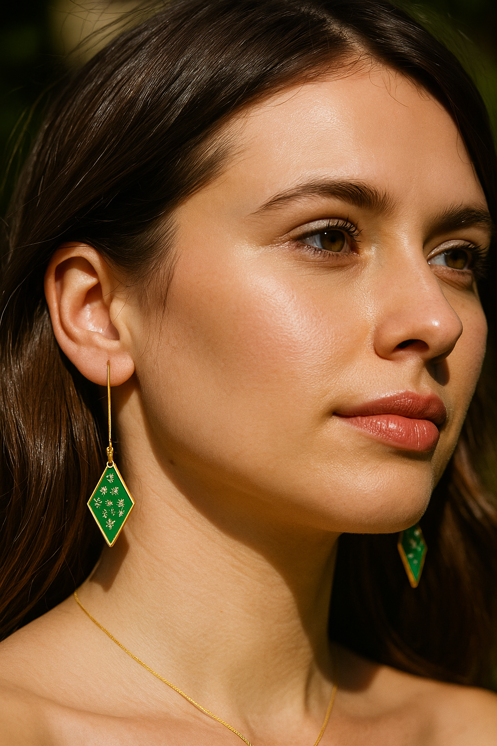 These earrings reflect the vibrant and enchanting allure of Vega, adding a fresh and lively touch to your ensemble, reminiscent of the star's captivating glow.