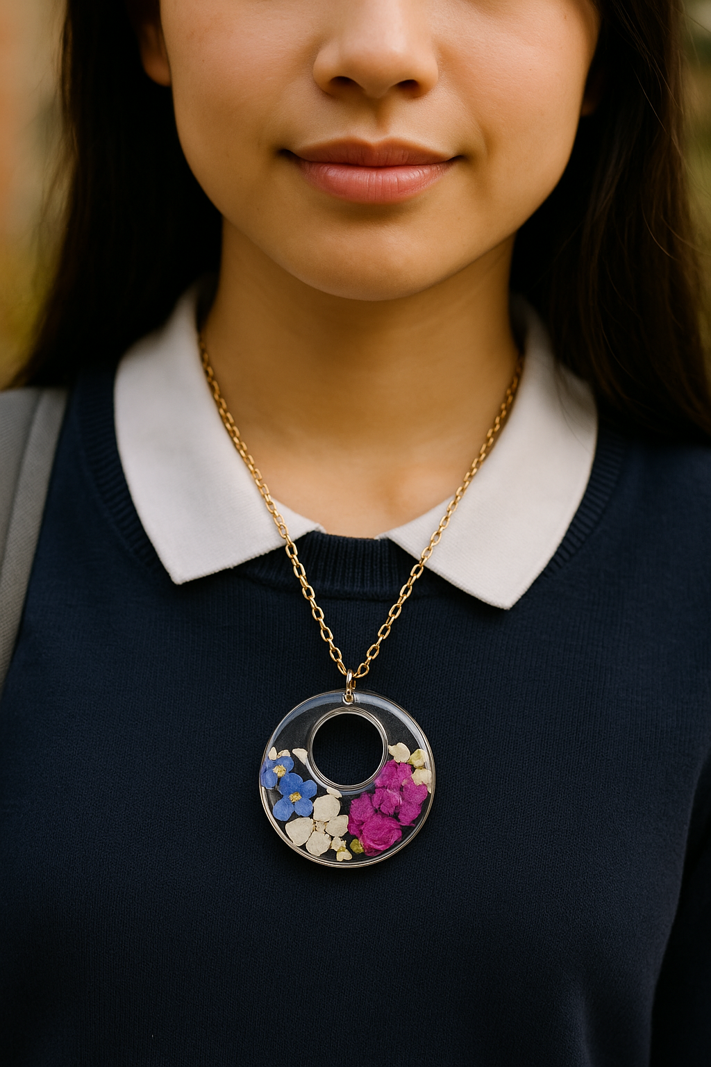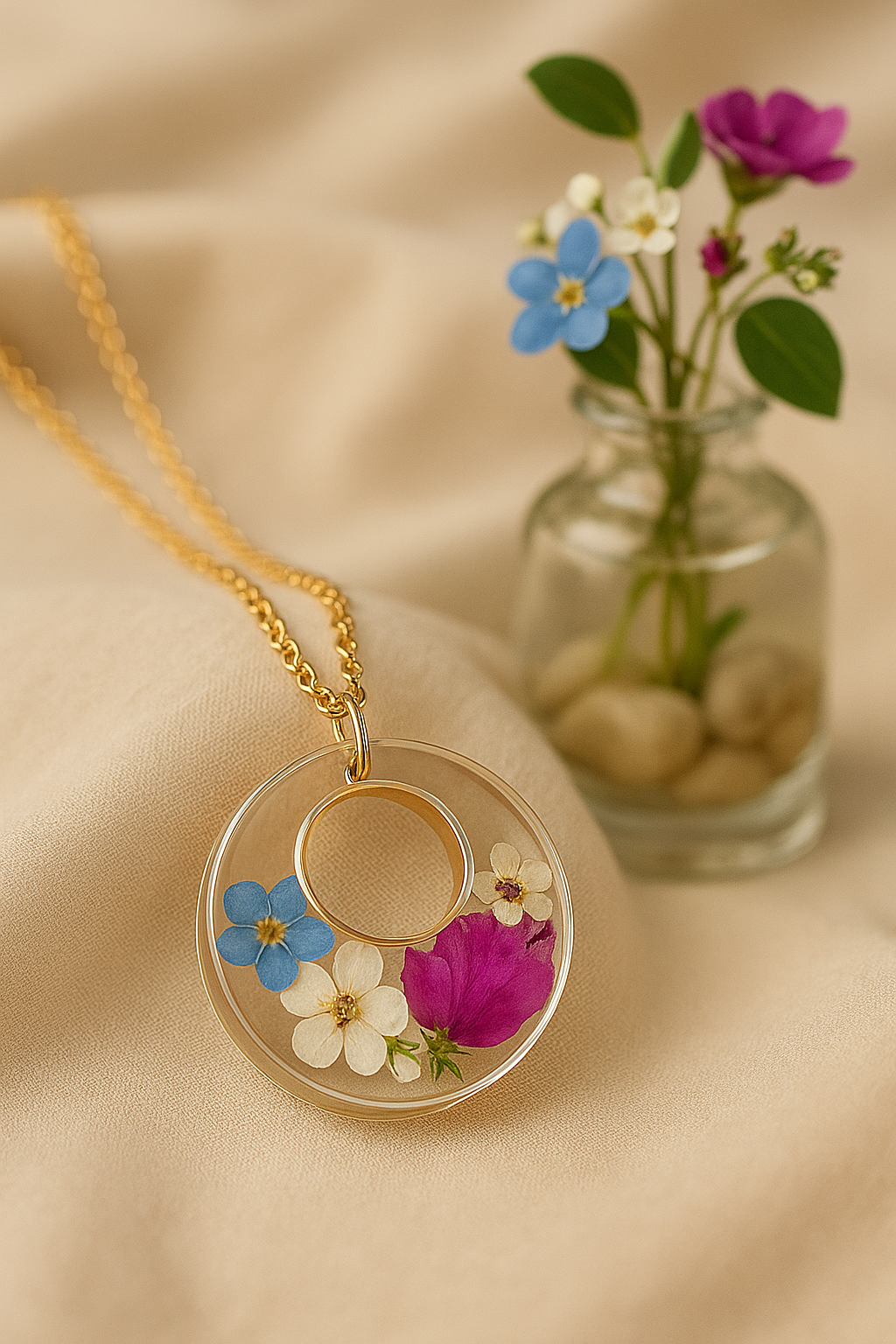 · Real Mixed Blooms: Each pendant features a unique blend of real flowers, making every piece truly one-of-a-kind.