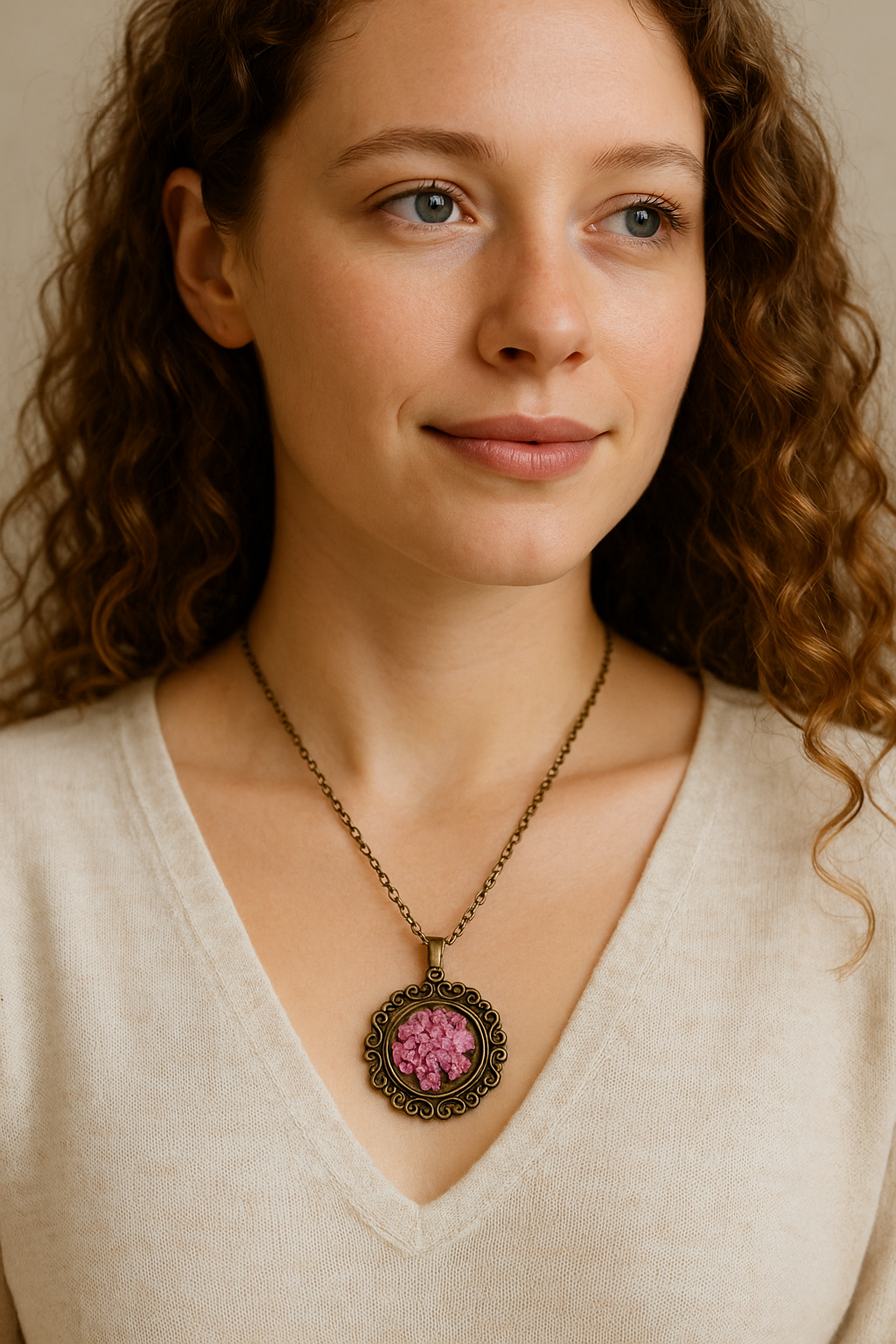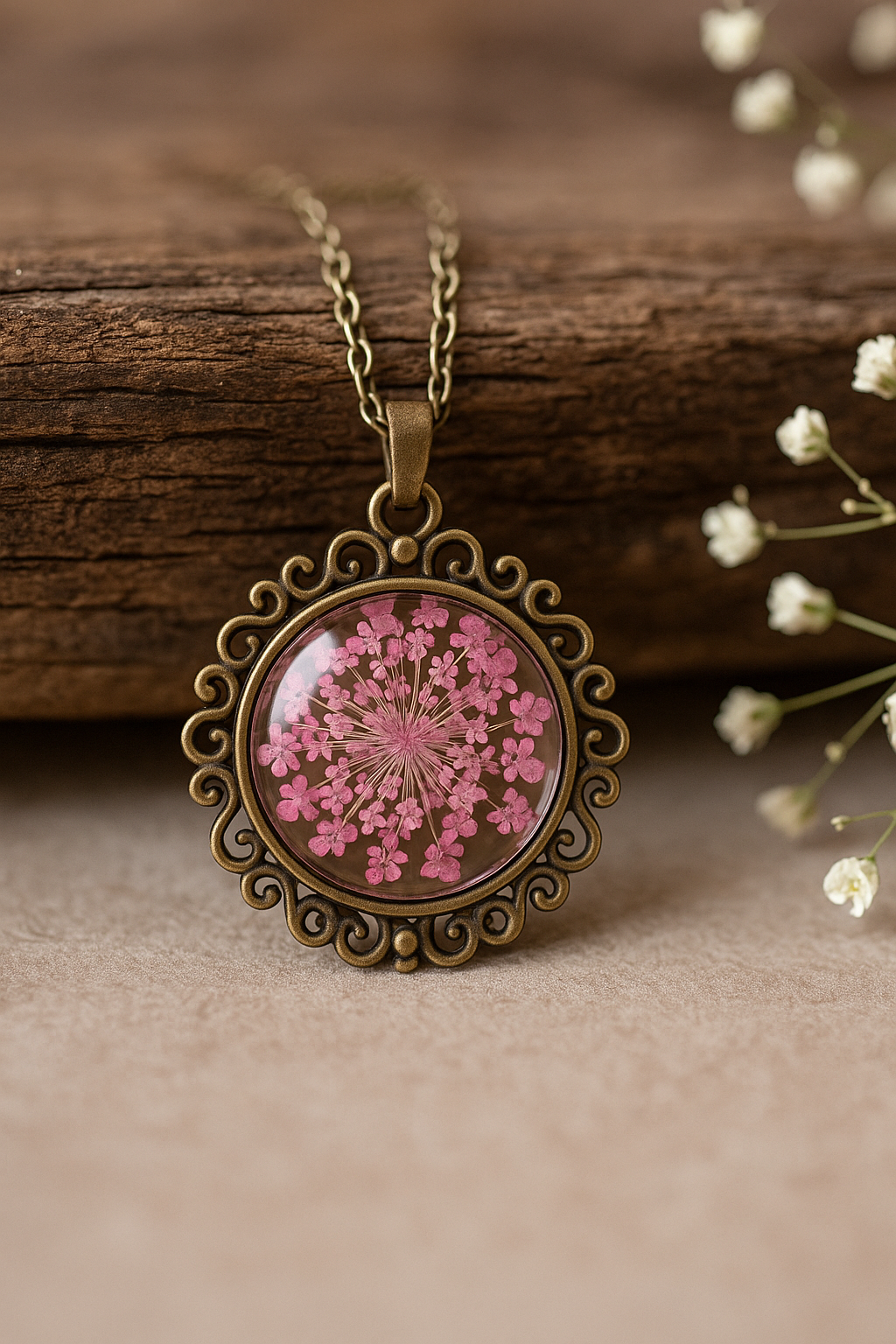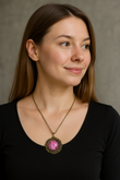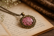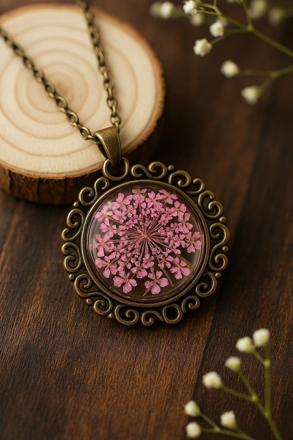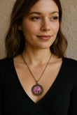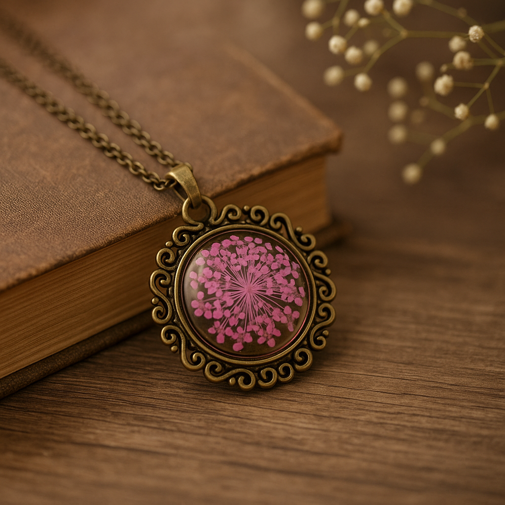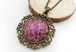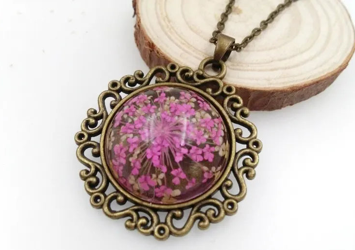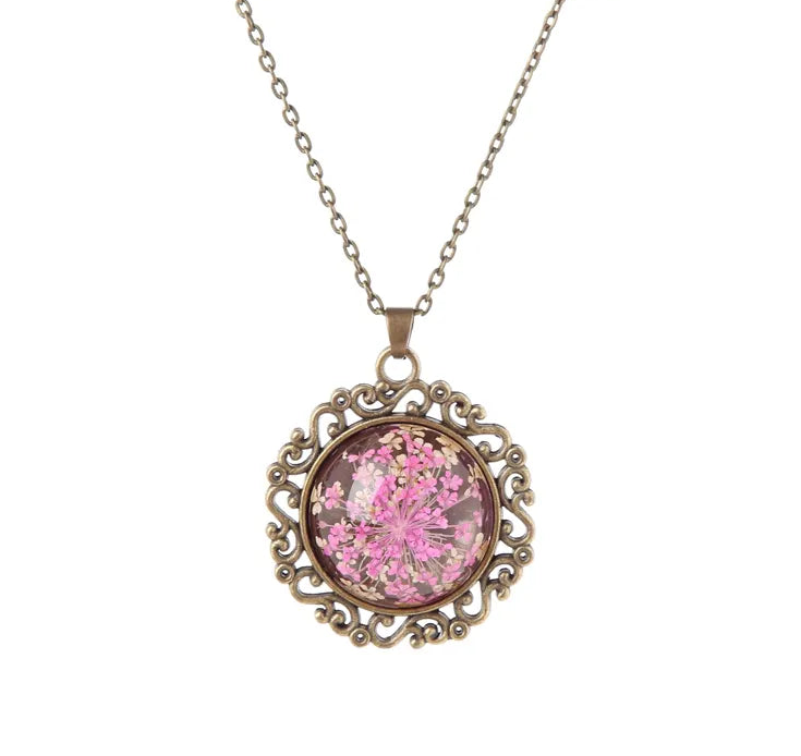 FLO's Vintage Women's Rounded Bronze Pendant Necklace with Natural Dried Flower